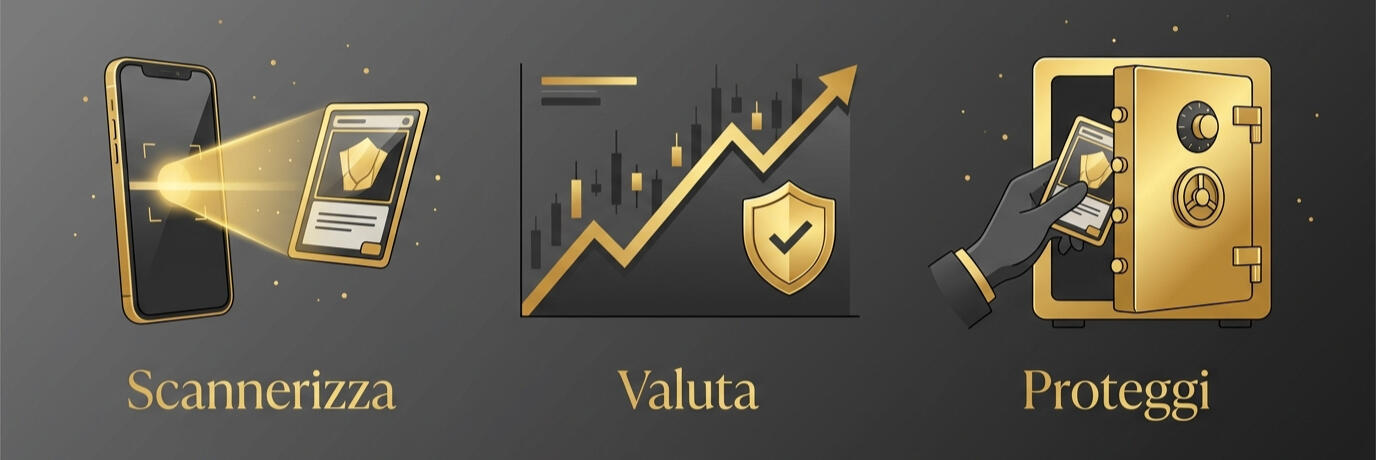 Scansiona. Valuta. Proteggi. La prima piattaforma globale che ti permette di gestire e scambiare qualsiasi collezione in più lingue, con un servizio di verifica che elimina il rischio di truffe.
